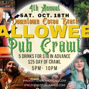 Cosmic Harmony Wellness Center18October5:00 pm - 10:00 pm4th Annual Halloween Pub Crawl Downtown Cocoa Beach