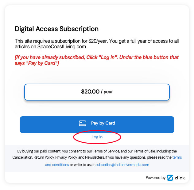 2.  Find any article you want to read that has the paywall popup. You may need to scroll down to see it depending on your device. Or go to this page: https://indianrivermagazine.com/become-a-premium-subscriber/.