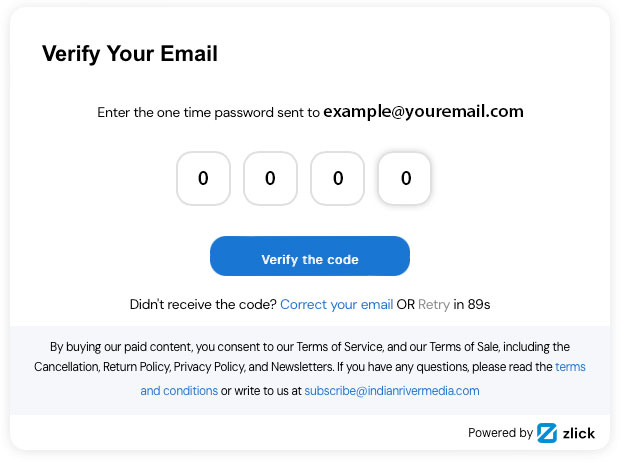 5. A one-time passcode will be sent to your email. Enter the 4-digit passcode and click the “Verify the code” blue button.